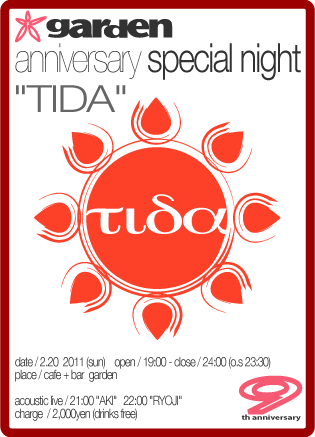2月20日の日曜日。gardenの9周年パーティーを行います!!