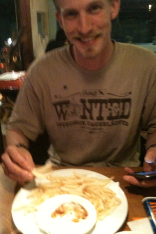 フライドポテトにJanのお母さんお手製のサテソース。Patatje oorlogと言うらしいです。めっちゃ美味しい!!