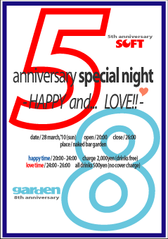 3月28日(日曜日)は春吉のやわらかスポット「cafe&bar SOFT」と合同のアニバーサリーパーティーを開催します!!
